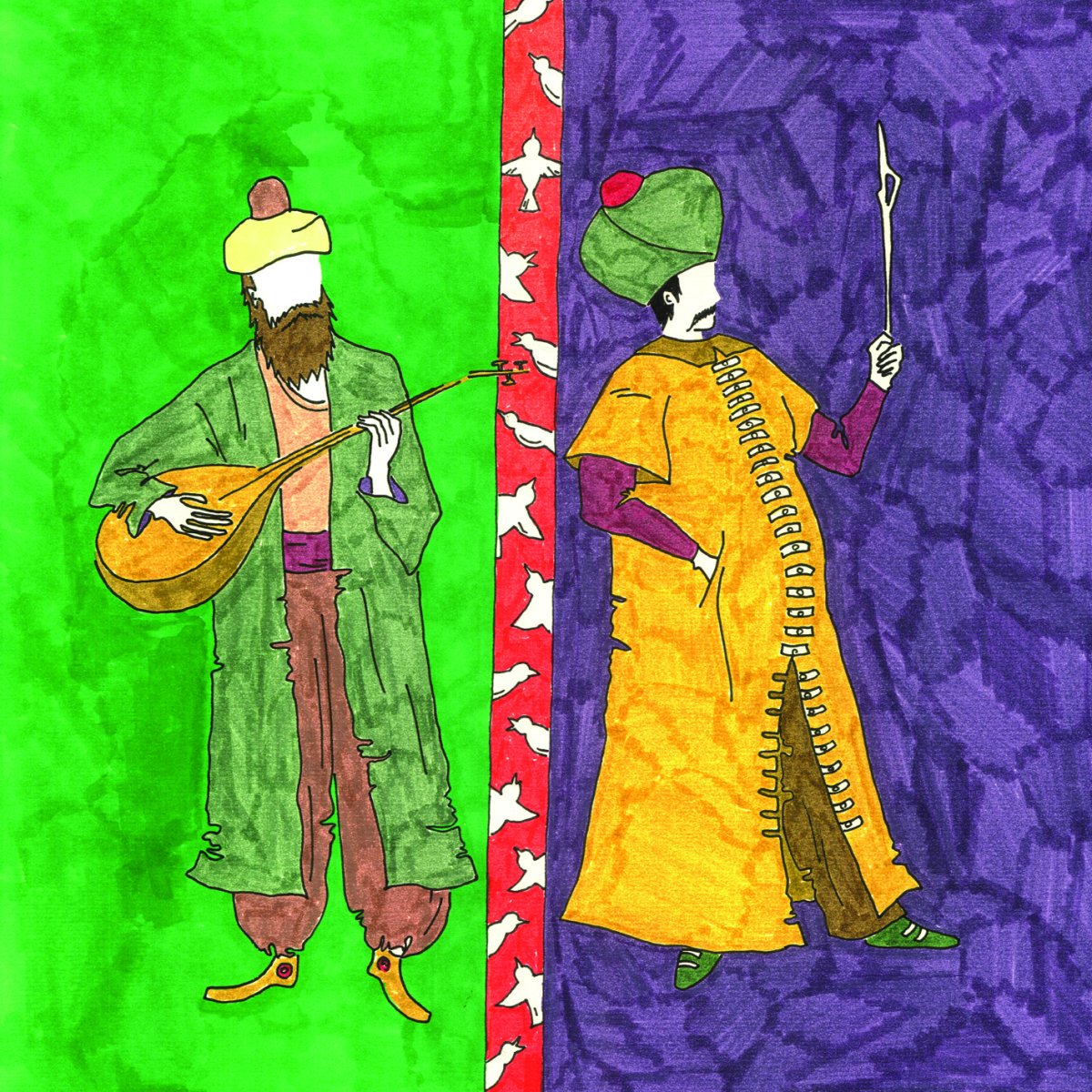 Four Maqam is a series of illustrations I created for a music album, based on four folk stories. Two are from Iranian tradition—Savar Savar and Khan Amiri—and two from Turkish tradition—Ötme Bülbül Ötme and Divan Improvisation with Semah.