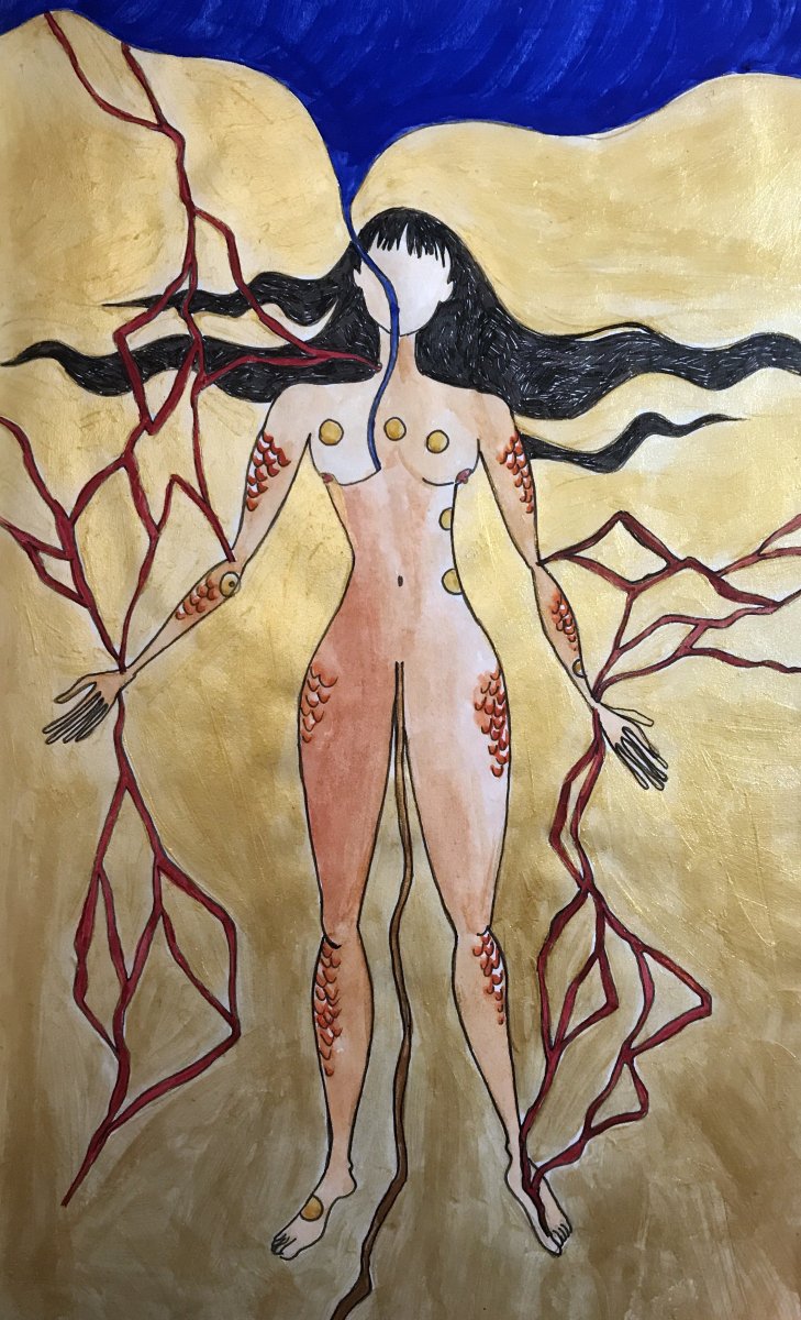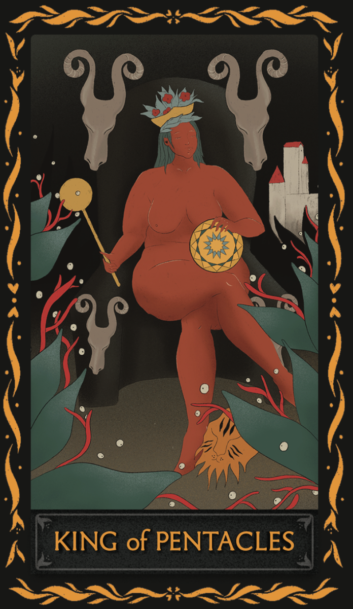 The Azzizzari Tarot is a deck in which all figures are female, created to focus on experiences related to breast cancer. The deck is inspired by the story that we are made from soil and water, like clay shaped by a divine hand and laid in the sun to be prepared. The divine touches our center to see if we are ready, and the mark of this touch is our belly button.