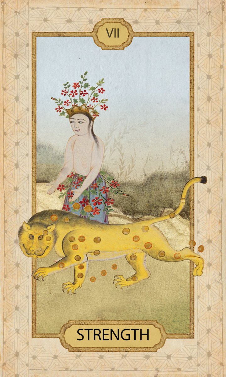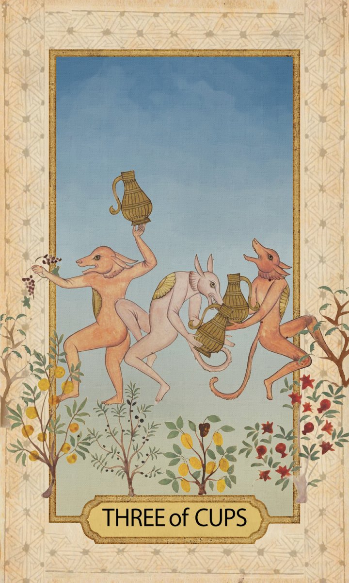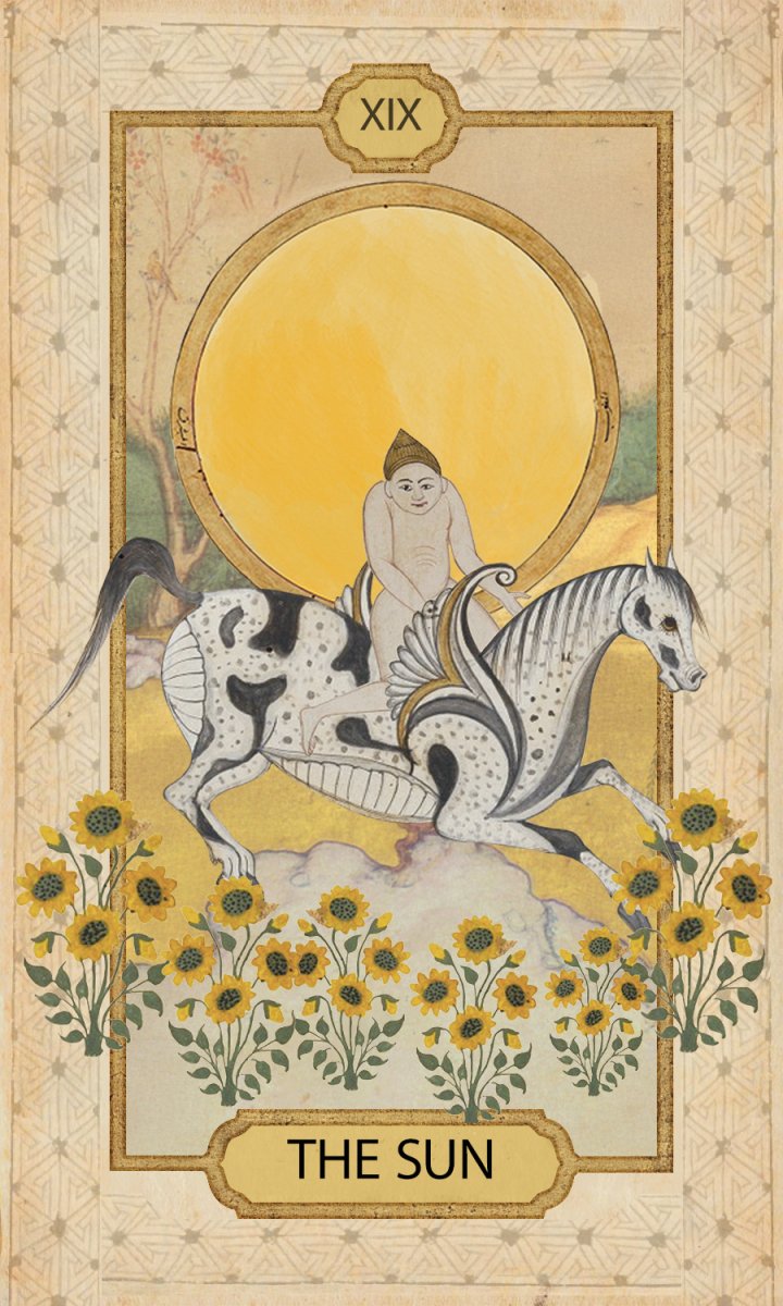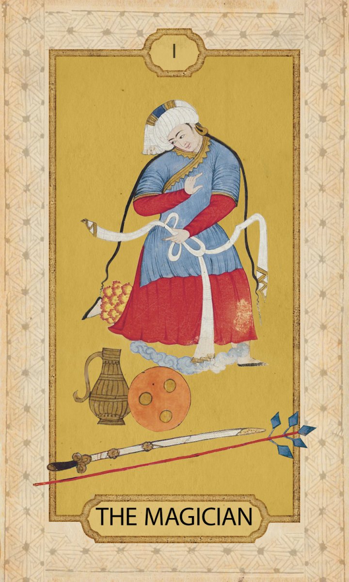This tarot deck is a collage of miniatures from Aja’ib al-Makhluqat, a 13th-century illustrated encyclopedia by Zakariya al-Qazwini. The book is one of the most famous works of Islamic literature and art, depicting wonders of the natural world, celestial phenomena, mythical creatures, and marvels of creation through richly detailed miniatures.