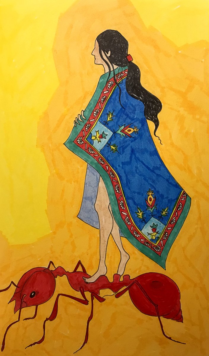 Nane Sarma is a beautifully illustrated children’s book based on the Persian legend of Nane Sarma and Amu Nowrouz. Nane Sarma, the embodiment of winter, eagerly waits for Amu Nowrouz, who brings spring, but falls asleep before he arrives. When she wakes, the world has transformed, and she must wait another year for their paths to cross.