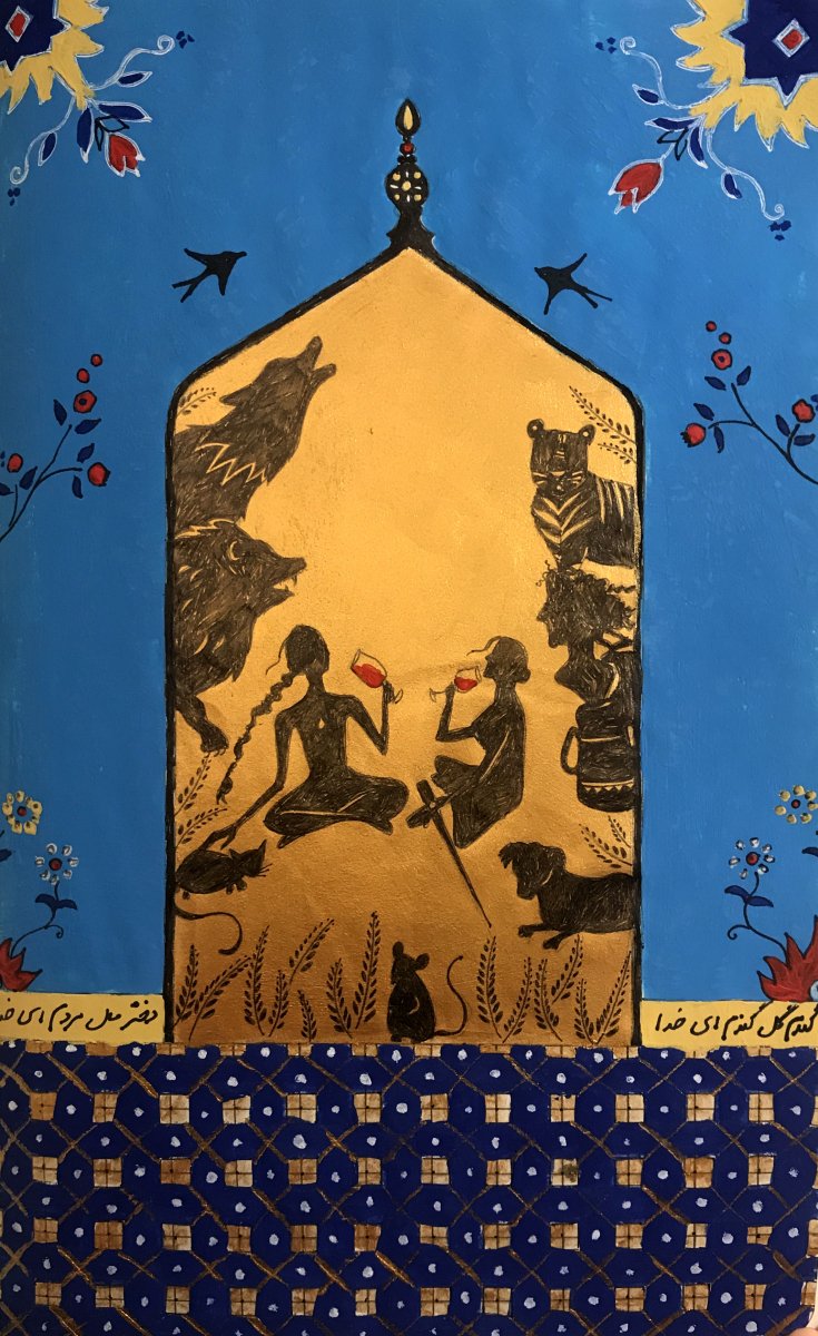 Torgheh is a mythical bird symbolizing transformation and renewal. I created this animated oil painting for projection at a folklore music festival for the piece named “Torgheh.” The music is played on the Dotar, a traditional two-stringed Persian instrument known for its deep, resonant sound and connection to Iranian folk music.