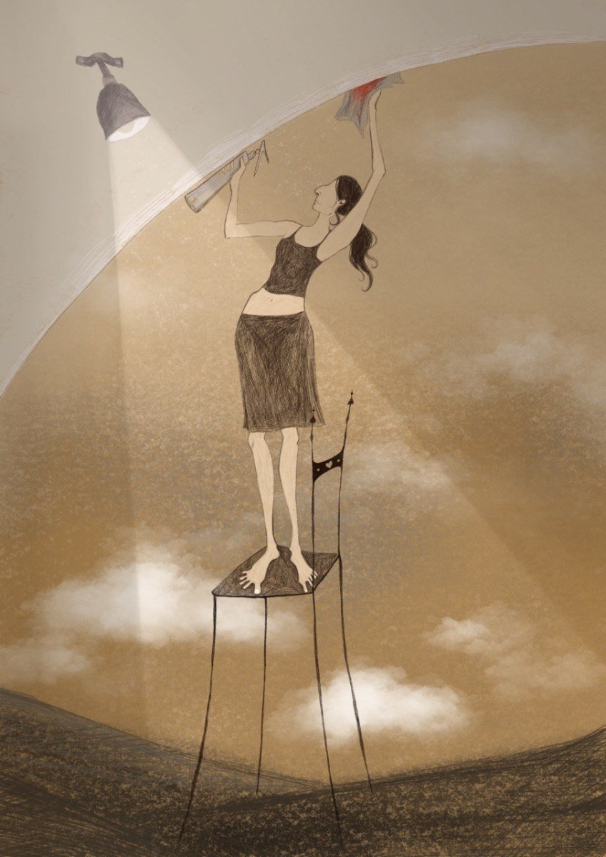 This piece is inspired by Khodanour Lejei, a 27-year-old Baloch protester from Zahedan, Iran, who was killed during the 2022 Zahedan protests. Khodanour’s image, showing him bound at the base of a flag, became a powerful symbol of resistance and injustice. The artwork reimagines him rising and taking flight, transforming a moment of suffering into a quiet symbol of hope, courage, and resilience.