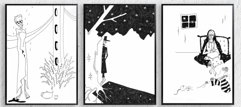 My Moleskine is a collection of illustrations created with rapidograph and marker in my Moleskine notebooks. Like A Swallow’s Diary, these works act as a personal visual diary, capturing moments, thoughts, and small stories from everyday life. The medium allows for precision and immediacy, turning each page into an intimate exploration of observation, reflection, and creativity.