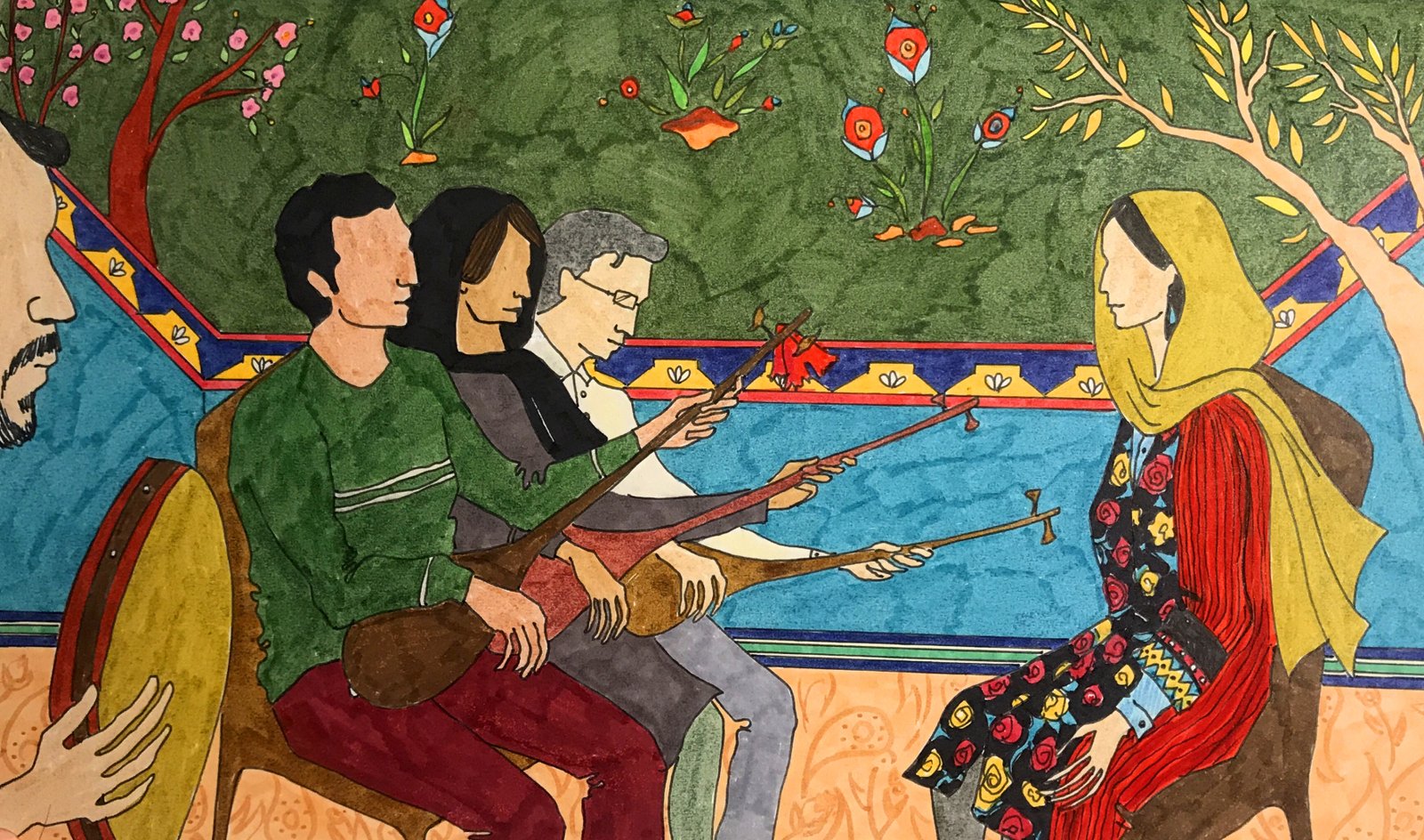 Four Maqam is a series of illustrations I created for a music album, based on four folk stories. Two are from Iranian tradition—Savar Savar and Khan Amiri—and two from Turkish tradition—Ötme Bülbül Ötme and Divan Improvisation with Semah.