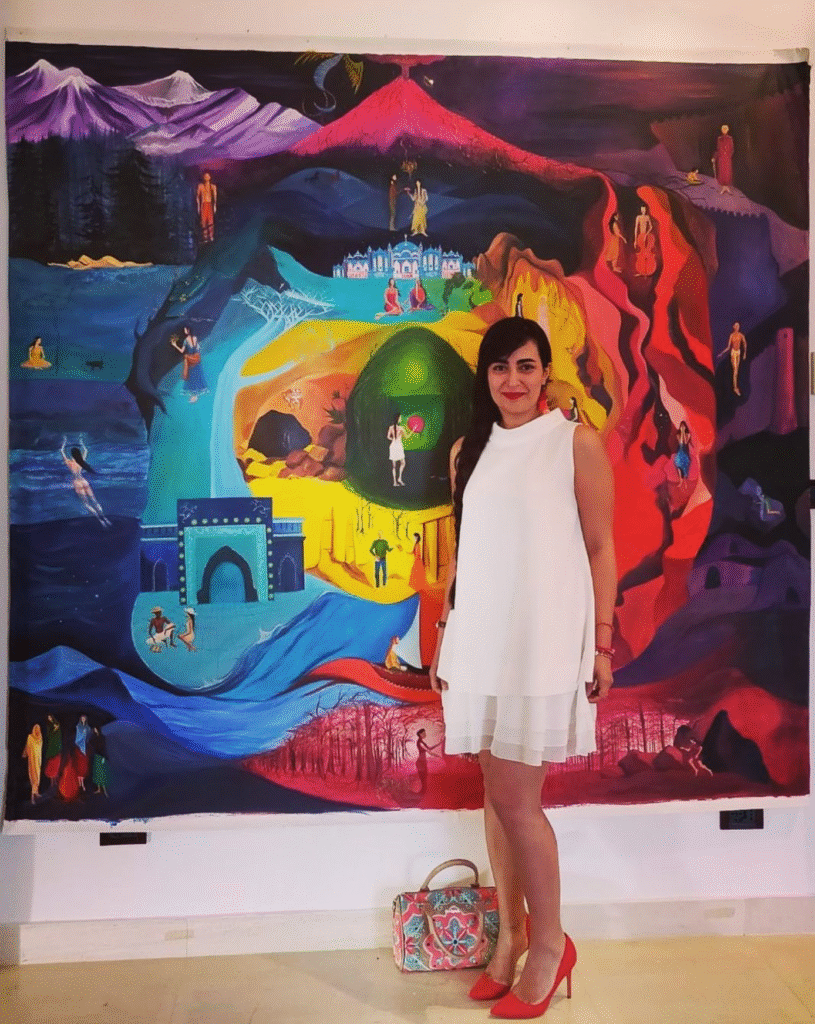 Spiral of Life (200 × 200 cm) is the central work of my master’s thesis in painting. It is a visual journey into transformation and identity, unfolding along a spiral path. The spiral begins at the top, where a volcanic mountain holds the egg of a phoenix, and moves inward through shifting landscapes—ocean, jungle, desert, and ancient monuments—inhabited by animals and figures that symbolize guides, friends, and teachers.